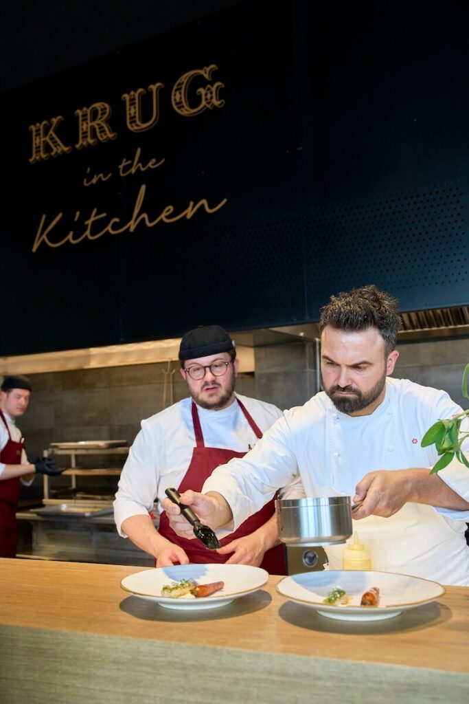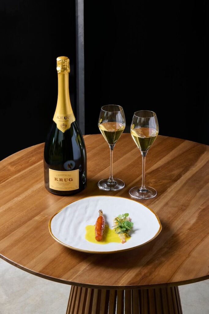 “Dans la cuisine ou dans la salle de dégustation, nous créons des recettes et du champagne pour offrir de nouvelles expériences”, souligne Julie Cavil, chef de Caves Krug. “Ces deux éléments se réunissent donc dans de délicieuses combinaisons”.